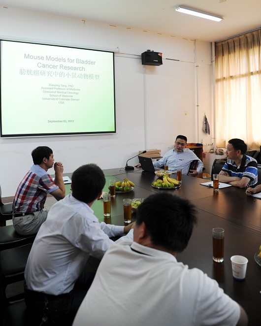仪式结束后,杨小平教授为在场师生作了一堂题为“膀胱癌研究中的小鼠动物模型”的精彩的学术报告。