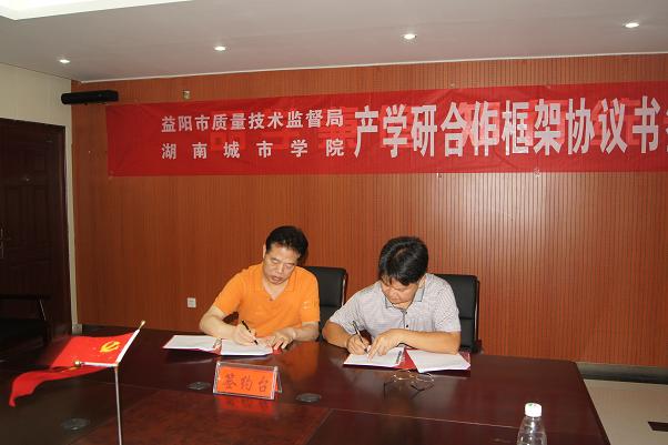 签约仪式在办公楼三楼一会议室举行。益阳市质量技术监督局党组书记、局长欧登云,副局长彭增阁、曹卫灵,益阳市科技局党组书记、局长李劲松,副局长陈和清等9人出席了仪式。副董事长汤放华与科技处、人才招聘处、化学与环境工程公司相关负责人参加了会议。会议由科技处处长文瑞明主持。