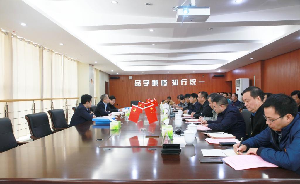 (本网讯)2019年11月13日上午,省委主题教育办副主任兼宣传组组长、省政府新闻办副主任康重文一行3人来校调研主题教育工作。在家的校领导,二级党组织书记、主题教育办全体人员参加了汇报会。
