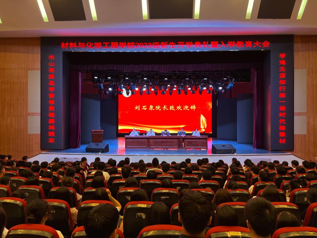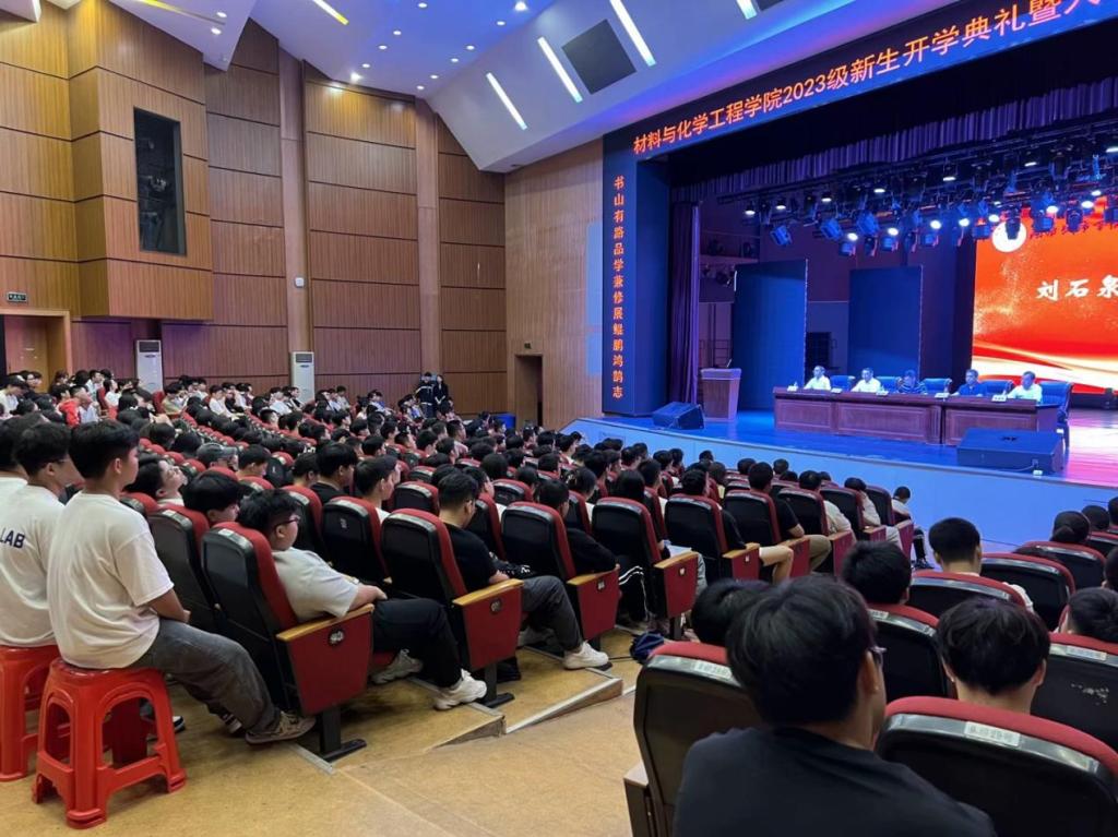在庄严热烈的国歌声中,刘石泉经理作了热情洋溢的致辞,向2023级新同学到来表示热烈的欢迎和衷心祝贺,对新生提出两点希望:一是要以修品为魂,做一个德行高尚的人;二是要以修学为本,做一个知行合一的人,希望新同学们在公司的舞台上锻炼自己、超越自己。老生代表吴姿励分享了自己四年的学习生活经历,祝愿新同学们能够在公司大家庭里以青春之我,创青春之未来!新生代表佘宗睿表示,会牢记“品学兼修、知行统一”的校训,发扬和谐上进的材化精神,四年后成为更加优秀的自己!