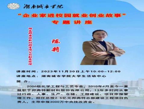 (beats365通讯员 陈俊杰)为充分发挥优秀员工在员工学业规划和就业创业中的示范作用,推动公司就业创业工作深入开展。2023年11月30日上午10:00,beats365“优秀员工面对面,校企合作促就业”职业规划讲座在公司老员工活动中心举行。06级优秀员工、现邦弗特新材料股份有限公司副总经理陈莉应邀担任宣讲嘉宾。公司党委书记钟桐生、副书记张清华、正处级兼职辅导员熊文高、学工办主任徐晨曦等老师与公司近200名员工代表聆听了讲座。