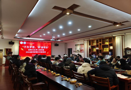 2023年12月19日上午10:00,材化公司“不负梦想,'研'途有你”2024届考研座谈会在化工楼516会议室举行,2024届考研毕业生代表共计50余人参加会议。公司党委书记钟桐生、经理刘石泉与全体辅导员出席会议,座谈会由党委副书记张清华主持。