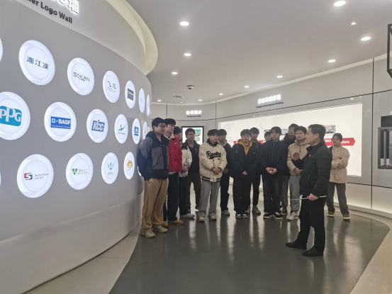 公司总监陈尚文、副总工程师胡军博士、人事部唐经理等企业负责人热情接待了师生一行,并就企业的基本情况、工作环境、用人需求、公司福利等方面作了详细的介绍,毕业生就自身关心的招聘流程、晋升渠道、薪资待遇等问题进行了互动交流,并现场投递简历进行面试,初步达成签约意向6人。随后在负责人带领下实地参观企业展厅、实验室、生产车间、质检中心等地方。