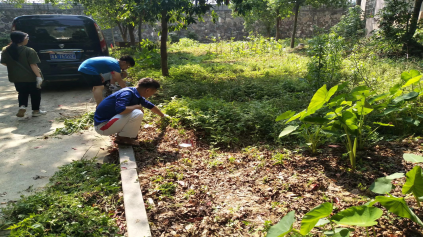 同学们齐心协力认真拔草