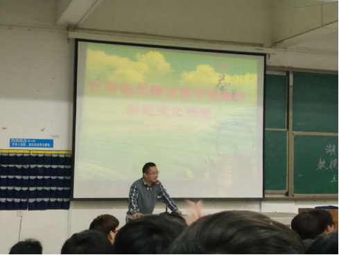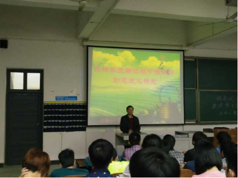 随后刘教授走上了讲台,一开口就以幽默的话语赢得了同学们阵阵喝彩。接着他正式开始了讲座,从黑茶的悠久历史作为开篇,循序渐进的将一片有关于茶文化的世界展开在同学们面前。话题逐渐深入,黑茶的制作原理、化学功效以及优点,刘教授都一一为我们道来。同学们的目不转睛的盯着讲台,都生怕错过一点汲取知识的机会。