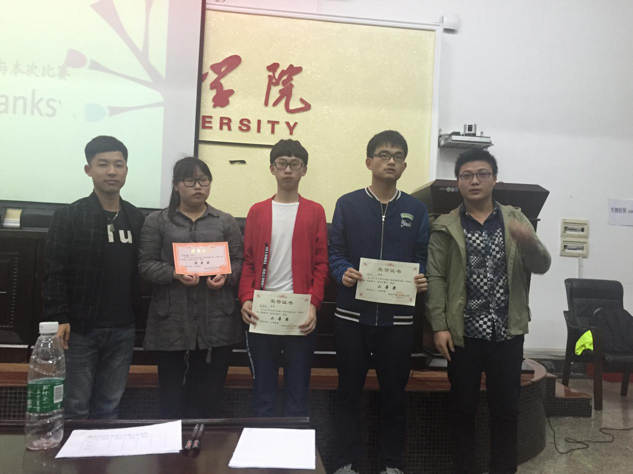 在团学会副主席蓝伟学长的总结和辩论队队长唐龙的点评之际,主办方院办公室将各位选手的分数排名整理完毕,龙欢媛选手名至实归地获得了复赛的冠军,李思瑾、侯清泉和杨议选以实力拿下了二等奖,而胥琼文、李紫薇和郭金鑫选手则稍逊取得了三等奖的好成绩。