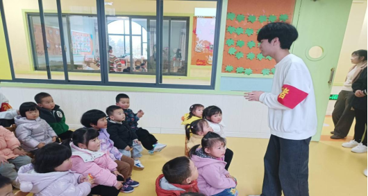 同学们用视频、图片,故事等形式向孩子们介绍雷锋叔叔的事迹,幼儿在倾听雷锋故事、学唱雷锋歌曲中,知道了雷锋叔叔是一位爱做好事、爱帮助别人的解放军叔叔,争先恐后的要当小雷锋。活动过程中,志愿者跟小朋友们热情互动,现场气氛热烈!之后志愿者们开始教小孩子们学唱《学习雷锋好榜样》,在演唱过程中,大家你一句我一句,唱一句跟一句,其乐融融的气氛感染了在场的每一个人。最后,志愿者与小朋友们拍下了集体照记录这一美好瞬间。