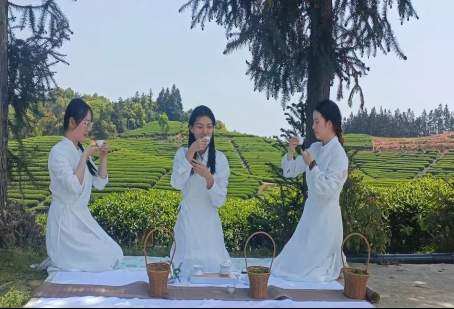 最美人间四月天,采茶品茗山水间。经过近三个小时的采摘,同学们提着“战果满满”的茶篓,席地而坐,泡茶品茗,徜徉于馨香氤氲的茶乡,欣赏着青山绿水间的茶园风光,尽情地享受着大自然的馈赠。