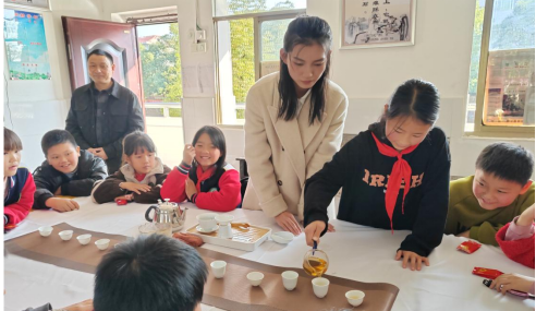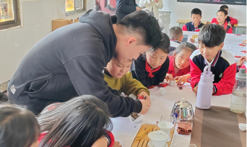 随后,达可Tea创新团队的丁超、余丽妍和谢佳敏等带领孩子们进入了实践环节。孩子们在他们的专业指导下,亲手泡制了富金花茶、千两茶,并细细品味。活动不仅锻炼了他们的动手能力,更让他们感受到了茶文化的美好,泡茶、品茶的过程中,孩子们的脸上露出了满足和自豪的笑容。