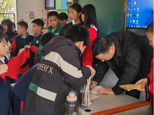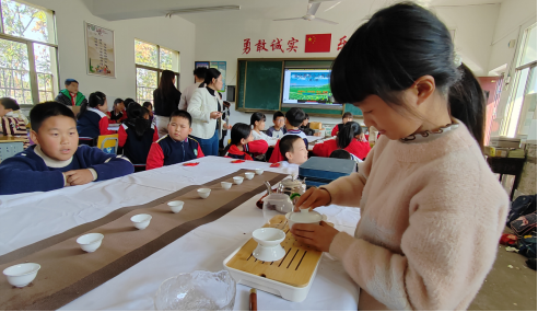 练好基本技能后,孩子们将亲手泡制的黑茶送给班主任、黑茶基地的老师以及创新团队的哥哥姐姐们,表达他们的感激之情。尽管教室内设施简单,但孩子们纯真的笑容,和为泡茶、品茶所付出的努力让在场的每一个人都为之动容。