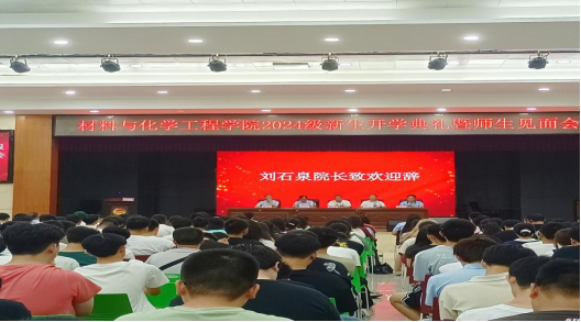 老生代表王飘分享了自己的学习生活经历,祝愿新同学在公司大家庭里以青春之我,创青春之未来!新生代表肖童表示,会尽快转变角色适应生活,发扬和谐上进材化精神,做一个懂得规划、持之以恒的人。教师代表公司贺国文教授希望同学们能学会生活、学会学习、学会实践,成为一个对自己完全负责、有所作为的材化学子。