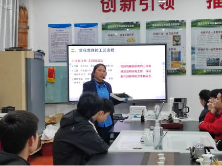 图1 教师向学员介绍金花龙珠制作的工艺流程