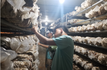 图3 沂橙科技团队成员了解菌棒培养情况