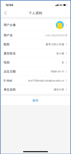 完成注册后,输入用户名和密码登录进入系统。点击头像图标,将必要的个人信息如实补充完毕,邮箱最好填机构邮箱,如kcx111@mails.tsinghua.edu.cn,机构务必填写完整,如填北京大学而非“北大”,北京师范大学而非“北师大”,上海交通大学而非“上交大”,以便准确认证。知网将通过位置、IP、机构名称、姓名等信息,采用大数据分析方式认证用户的合法性。
