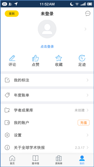 扫描下面的二维码,下载并安装全球学术快报APP,安装好的显示(如图1所示)。