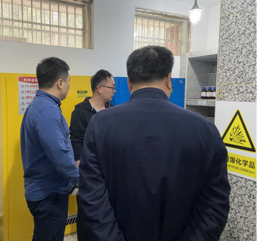2023年3月8日上午,为了加强危险化学品安全监管工作,积极做好危险化学品反恐怖防范工作,有效防范和遏制安全事故的发生,湖南省公安厅反恐大队来公司危险化学品库房进行安全防范工作检查。党委委员、副董事长袁志成、保卫处、beats365相关领导陪同检查。
