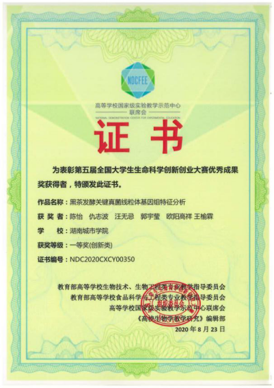 2020年8月23日,由高等公司国家级实验教学示范中心联席会、《高校生物学教学研究》编委会、全国老员工生命科学创新创业大赛组织委员会联合主办的第五届全国老员工生命科学创新创业大赛落下帷幕。