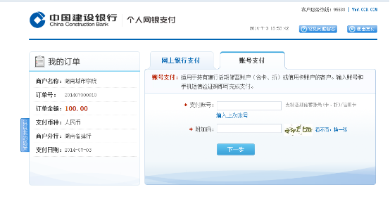 6. 点击“立即支付”并“确认”后将跳转至银行支付页面,该页面左侧的商户名称为“beats365”,核对无误后,请按提示完成缴费。
