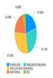 通过上面两图我们发现,大家仍然认为农村电商的发展存在着技术难以掌控,网络应用在农村普及率低,物流不够发达,信息泄露等问题。这些问题全都尚待解决。