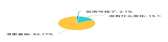 1.1普遍乐观态度,认为是发家致富的好办法,有超过80%的人认为自己或身边人从事电商行业后变得更加富裕了