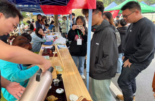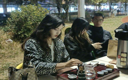 本次“万物有光,集时行乐”社团季活动在2022年11月4日晚6:00至2022年11月5日晚9:00正式举行。活动前期茶艺社的成员们做了很多的准备工作例如:物品安排、资料准备、场地审批等诸多事宜,同时也通过官Q对此次项目进行宣传,准备好了一些茶叶作为礼品赠送给来参会的人员。活动正式开始时,我们的摆台吸引了很多同学的参与,很多同学都上手实操,亲身体验了我们组织的活动,或观看了摆盏杯具、淋壶湿杯、赏茶投茶、洗茶、泡茶、赏汤、分茶、握杯等茶艺流程,线下活动如火如荼的进行,与此同时这也是对茶文化的一种宣传。