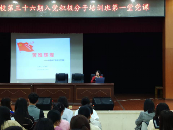 接着,马克思主义公司王锋娟老师给学员们上第一堂党课,王老师带领同学们回顾了中国共产党建党99年的苦难与辉煌的历史,采用线索式讲解法,对党史的三个重要节点与阶段层层展开,让我们对党的历史有了更深的了解。党课结束前,王老师留下了一道思考题:对于你,继续担当党的初心和使命应该怎么做?期待学员们在实践中找寻自己的答案。