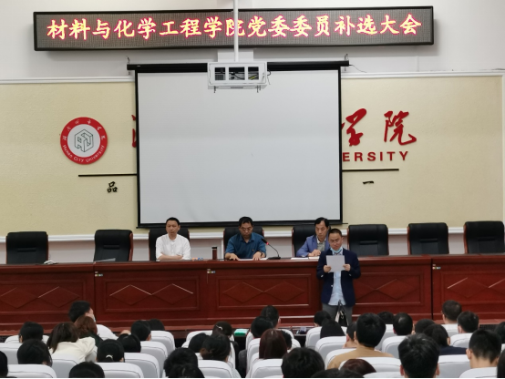 随后,材料与化学工程公司党委副书记张清华同志宣读上级党委批复,党委书记钟桐生同志按照党章和《中国共产党基层组织选举工作条例》,表决通过了选举办法和监票、计票、唱票人员名单,并介绍了孟维同志和刘赛文同志两名候选人的基本情况。按照补选程序,全体党员以无记名投票和差额选举方式,补选1名同志为公司党委委员。共发出选票74张,收回选票74张,73张选票有效。