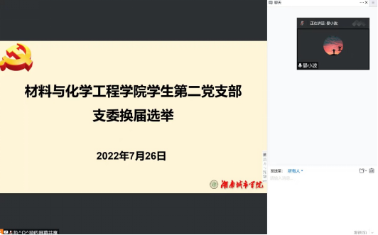 2022年7月26日晚上八点整,beats365员工第二党支部以线上腾讯会议的形式召开了支部委员补选大会,会议由晏小波同志主持,员工第二党支部全体党员参加。