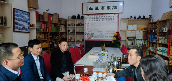 4月21日,黑茶金花湖南省重点实验室胡拥军教授、刘石泉教授、益阳市文化旅游广电体育局对口扶贫相关领导赴安化湘蛮生态农业科技有限公司就安化黄精开发进行调研,公司总经理夏铁钢、冷市镇镇长胡宝成热情接待了调研组一行。