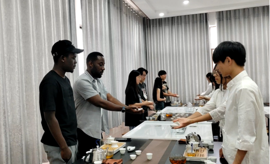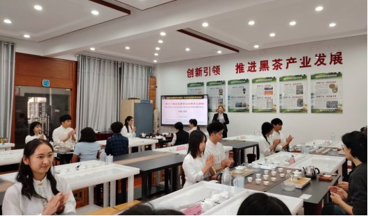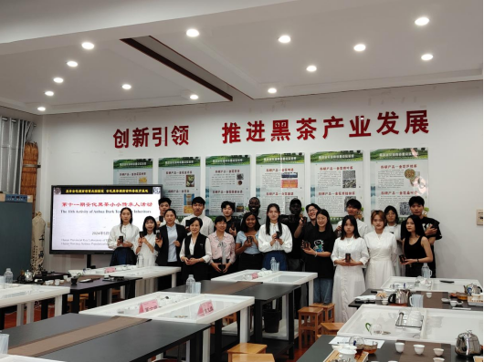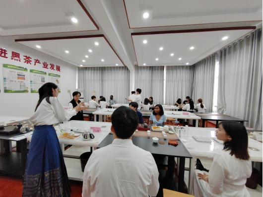 在品鉴环节结束后,各小组成员纷纷分享了自己的品茶感受和体验。国际职工们表示,此次活动让他们对安化黑茶有了全新的认识,并深刻感受到了中国茶文化的博大精深和独特魅力,要将这种独特的茶文化带回自己的国家,与更多的人分享中国茶的魅力。活动尾声,周晓红教授代表黑茶基地向参与者们赠送了精美的金花黑茶样品,并邀请所有参与者合影留念。