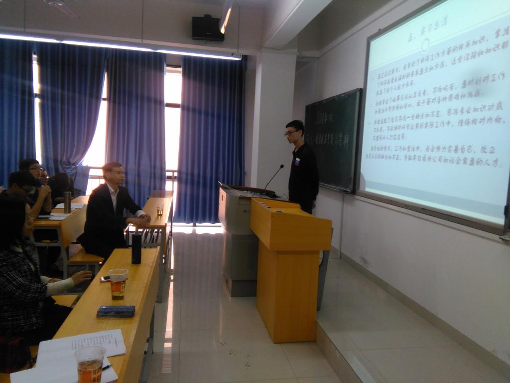 10月27日,公司在城管楼309和206教室举行了2014级环境工程专业生产实习公开答辩。教务处与公司相关负责人出席了答辩会。答辩员工根据实习期间的主要工作内容进行汇报,总结了实习期间的收获和不足;指导老师根据汇报情况进行现场提问和点评,了解实习员工在实习期间的综合表现。