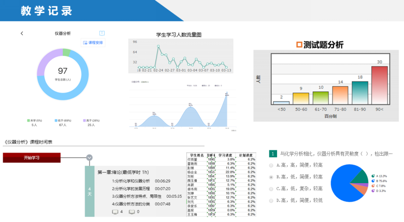 夏莉老师将《仪器分析》线上教学目标定位为“备课有资源,学习有质量”,课前,在知到推送学习资源和学习任务点;课上,腾讯课堂或智慧树见面课进行直播互动,知识点串讲和梳理,开展对重点难点知识的讲解和讨论,发布课堂练习了解员工对知识的内化吸收,通过在线的即时沟通,掌握学情;课后,共享课视频回看,针对性答疑,引导员工结构性学习,举一反三。通过大数据的收集有效跟踪员工的学习情况与效果发现,通过三周的适应,员工对于线上学习热情度、自主性有显著提升。