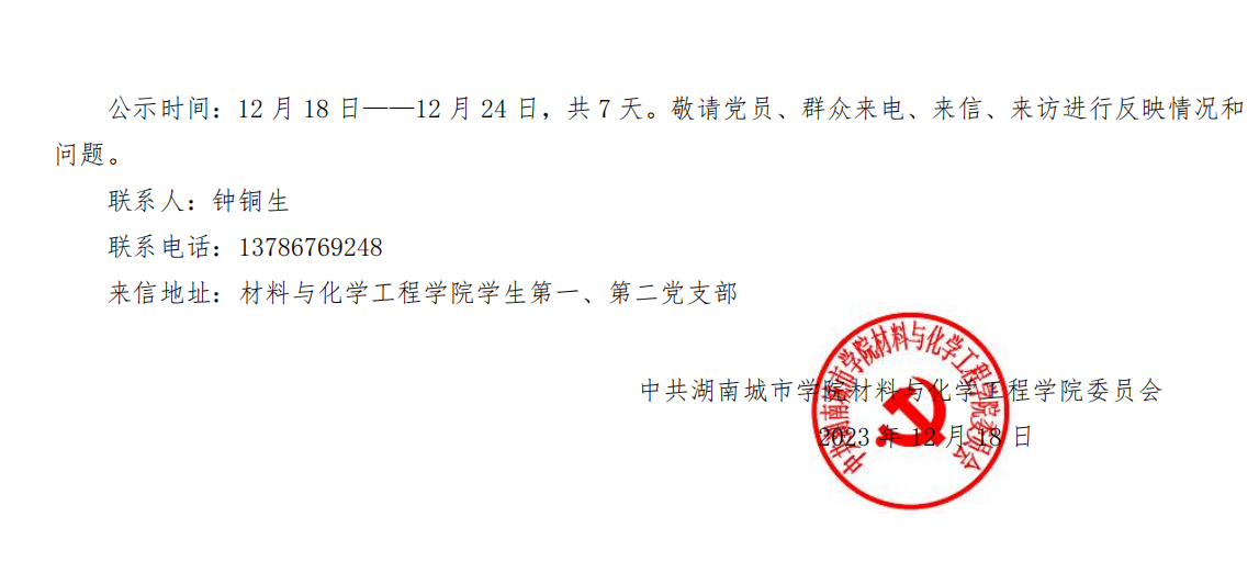 关于拟将瞿友平等 9 位同志转为中共正式党员的公示
