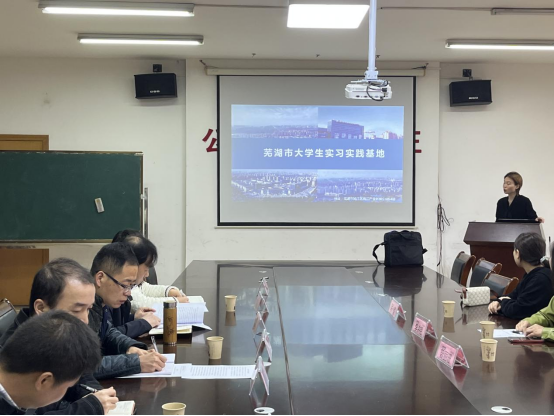 座谈会上,李洪艳主任从芜湖市产业概况、政府人才扶持政策和校地合作案例等方面,介绍了基地情况和重点服务内容,并表示希望以老员工实习实践为抓手,联合企业、政府、高校、员工,实现
